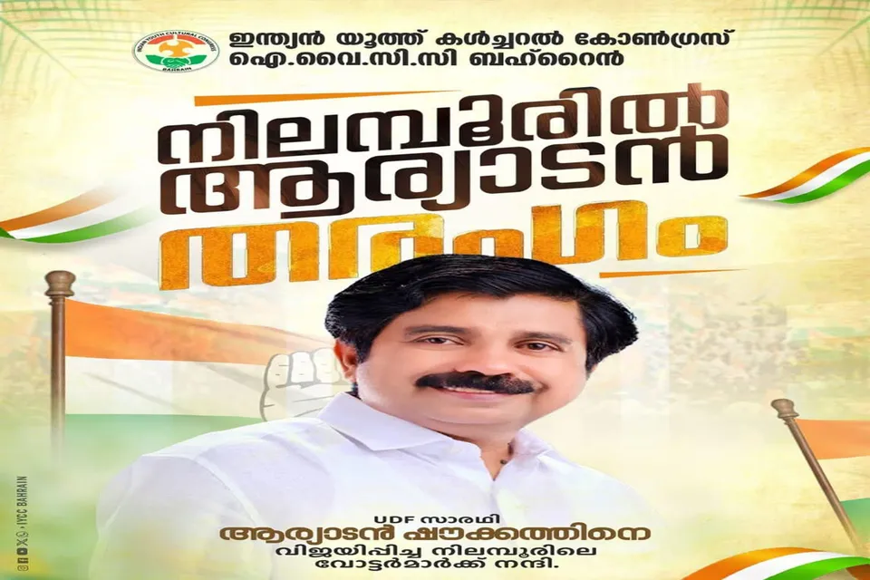 യു.ഡി.എഫ്. വിജയം സി.പി.എം - സംഘപരിവാർ കൂട്ടുകെട്ടിനും ഭരണത്തിലെ കെടുകാര്യസ്ഥതക്കും കനത്ത തിരിച്ചടി - ഐ.വൈ.സി.സി ബഹ്റൈൻ