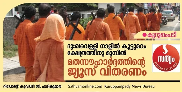 ദുഃഖവെള്ളി നാളിൽ കൂട്ടുമഠം ക്ഷേത്രത്തിനു മുമ്പിൽ മതസൗഹാർദ്ദത്തിന്റെ ജ്യൂസ് വിതരണം