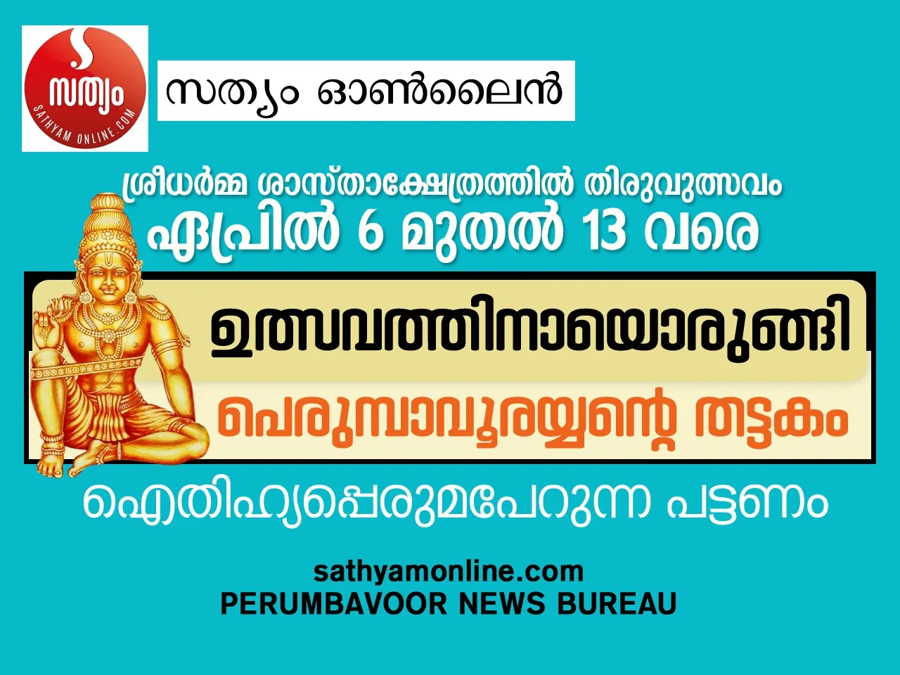 വിഷുക്കാലത്തിനു മുന്നോടിയായാണ് പെരുമ്പാവൂരിൽ ഉത്സവത്തിനു കൊടിയേറുന്നത്. ഏപ്രിൽ 6 മുതൽ 13 വരെയാണ് ഇത്തവണ ഉത്സവം. കളരി ആരാധനമൂർത്തീരൂപത്തിൽ ഇടതുകൈ കുത്തി, ഇടതുതുട കിടത്തിയിട്ട്, ചിന്മുദ്രയോടുകൂടിയാണ് ധർമ്മശാസ്താവിന്റെ ഇരിപ്പ്.