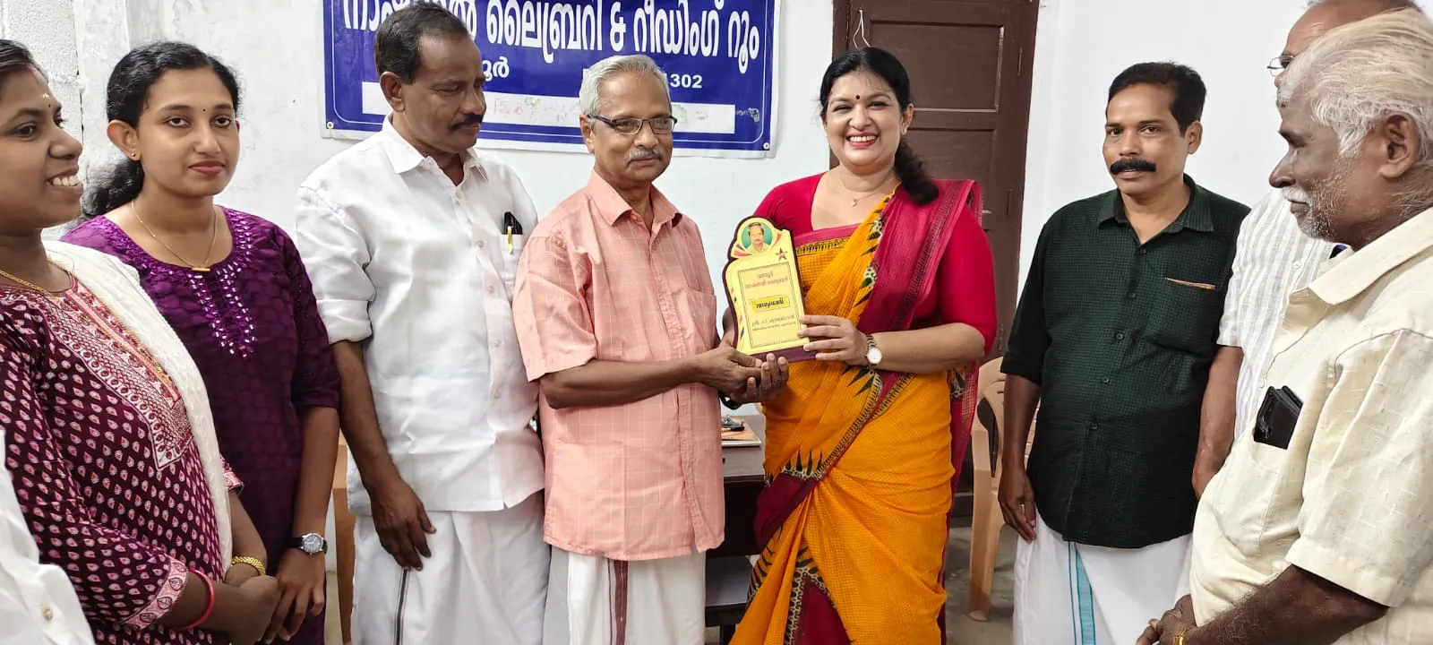 വിവിധ തലങ്ങളിലായി പ്രതിഭ തെളിയിച്ച എ.എസ്. ചന്ദ്രമോഹനൻ (കവിത പുരസ്കാരം)കുമാരി അഞ്ജലി എസ് മോഹൻ, (രണ്ടാം റാങ്ക്, എംഎച്ച്ആർഎം, എംജി യൂണിവേഴ്സിറ്റി), ശ്രീമതി രഞ്ജിനി സിനു (കവിത പുരസ്കാരം)എന്നിവര് ലൈബ്രറിയുടെ ആദരവ് ഏറ്റുവാങ്ങി.