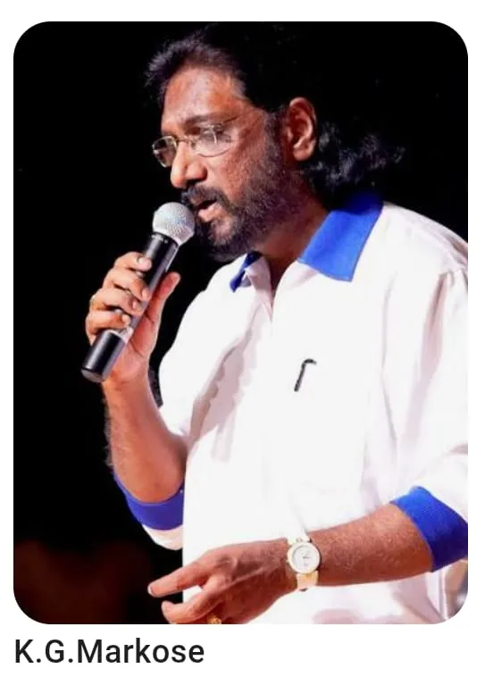 പതിനായിരത്തോളം ക്രൈസ്തവ ഭക്തിഗാനങ്ങളും അയ്യായിരത്തോളം മാപ്പിളപ്പാട്ടുകളും നൂറോളം ചലച്ചിത്രഗാനങ്ങളും പാടിയിട്ടുള്ള കെ.ജി മർക്കോസിന്റെയും (1958),