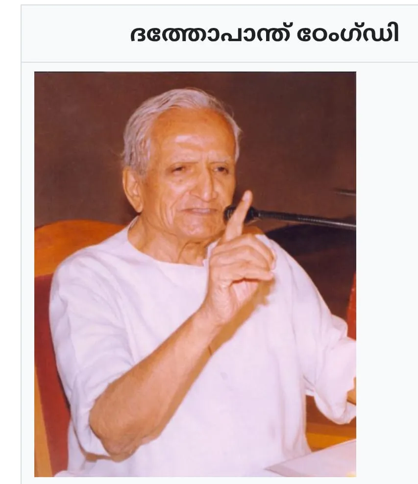 സ്വദേശീ ജാഗരൺ മഞ്ച്, ഭാരതീയ കിസാൻ സംഘ്, ഭാരതീയ മസ്ദൂർ സംഘം തുടങ്ങിയ പ്രസ്ഥാനങ്ങളുടെ സ്ഥാപകനും തൊഴിലാളി നേതാവുമായിരുന്ന ദത്തോ പന്ത് ഠേഗ്ഡി (നവംബർ 10 , 1920 - ഒക്ടോബർ 14 , 2004 ),