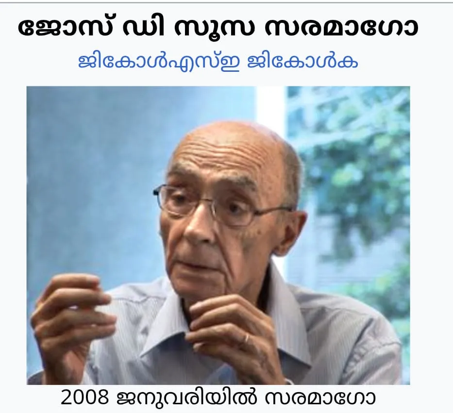 ചരിത്രാധിഷ്ഠിതവും ഭാവനാ സമ്പന്നവുമായ നോവലുകളിലൂടെ ലോക ശ്രദ്ധയാകർഷിക്കുകയും പോർച്ചുഗിസ് ഭാഷയിൽ ആദ്യമായി നോബൽ സമ്മാനം ലഭിക്കുകയും ചെയ്ത ചെയ്ത സാഹിത്യകാരനും, നാടകകൃത്തും പത്രപ്രവർത്തകനുമായിരുന്ന ഹൊസേ ഡിസൂസ സരമാഗോ