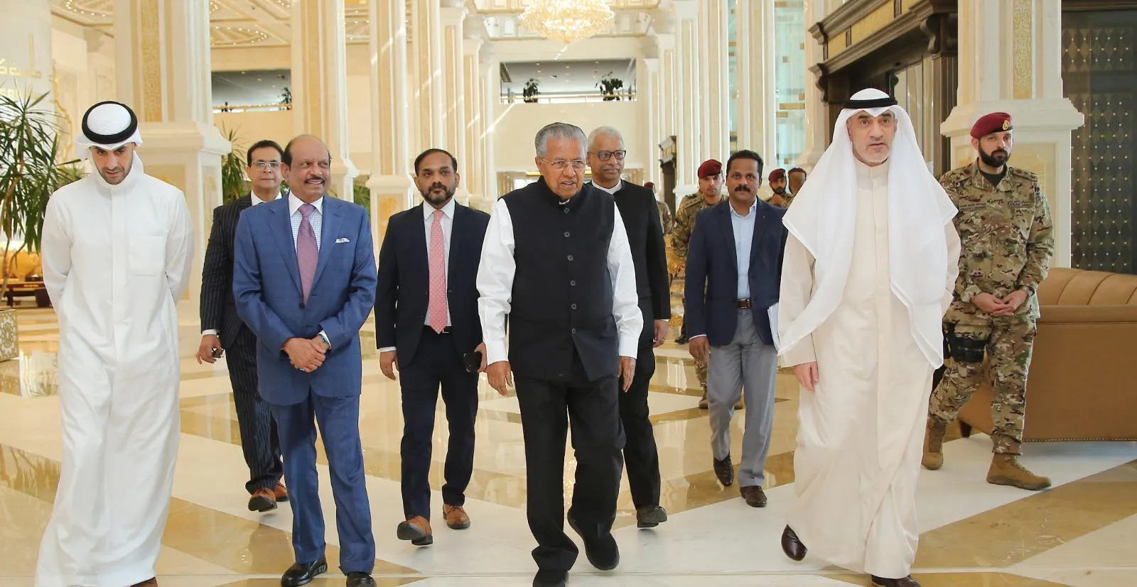 കുവൈത്ത് സിറ്റി: ദിദ്വിന സന്ദർശനത്തിനായി കുവൈത്തിലെത്തിയ കേരള മുഖ്യമന്ത്രി പിണറായി വിജയനെ കുവൈത്ത് ഊഷ്മളമായി സ്വീകരിച്ചു. കുവൈത്ത് ഉപപ്രധാനമന്ത്രിയും ആഭ്യന്തര മന്ത്രിയുമായ ഷെയ്ഖ് ഫഹാദ് യൂസഫ് സൗദ് അൽ സബാഹ് അൽ ബയാൻ പാലസിൽ വെച്ച് മുഖ്യമന്ത്രിയുമായി കൂടിക്കാഴ്ച നടത്തി ചർച്ചകൾ നടത്തി.